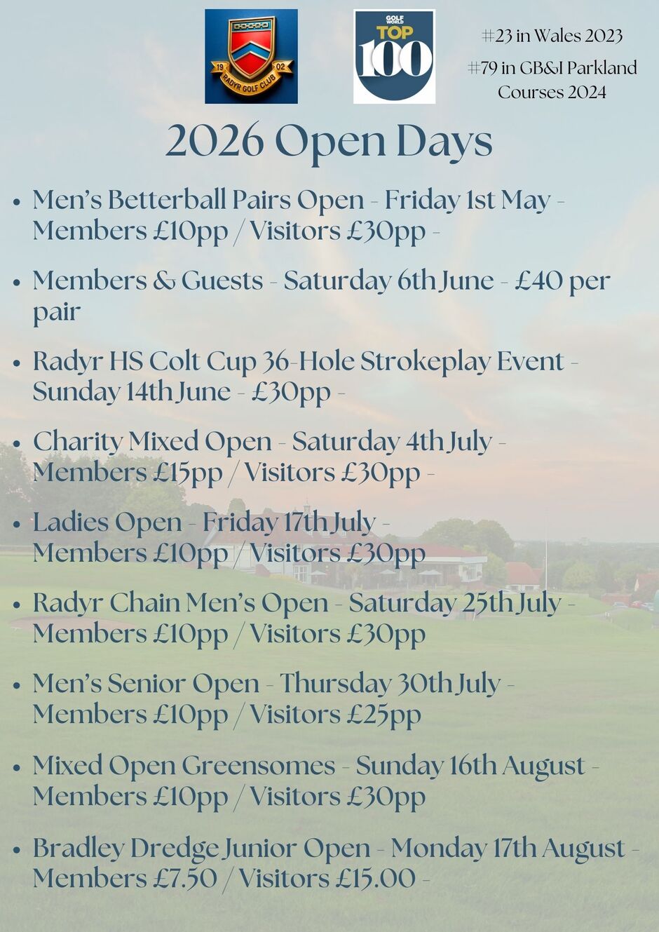 Radyr Chain Men's Open - Saturday 25th July 2026 - Bookings open Friday 16th January at 19:30